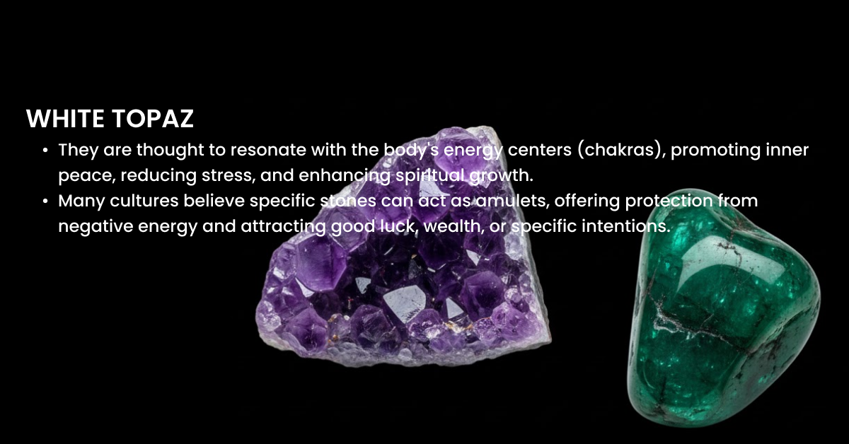 White topaz offers a clear, brilliant sparkle with a smooth and refined appearance, often resembling more expensive gemstones. It is durable and affordable, making it a great choice for both everyday wear and elegant statement pieces. With its bright clarity and versatile cuts and sizes, white topaz delivers timeless style without compromising on sophistication.